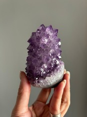 アメジストスタラクタイトは、珍しい形状とその美しい結晶構造が特徴的で、まるで鍾乳石のような独特なフォルムからスタラクタイトと呼ばれています。薄くスライスしたタイプも当店では販売しておりますが、どちらも希少性が高く海外のコレクターにも人気が高いので入荷のハードルが高いタイプのストーンです。
