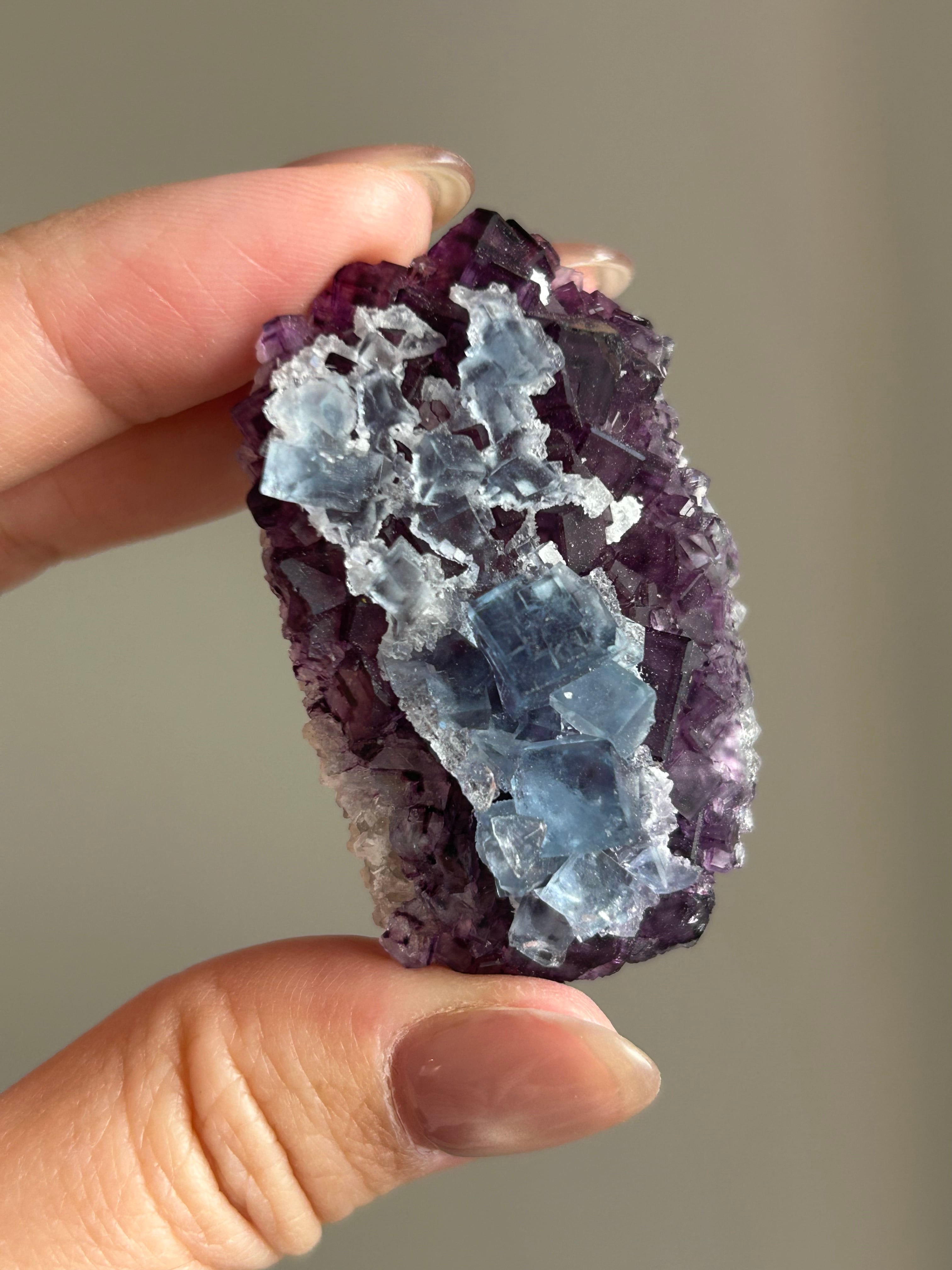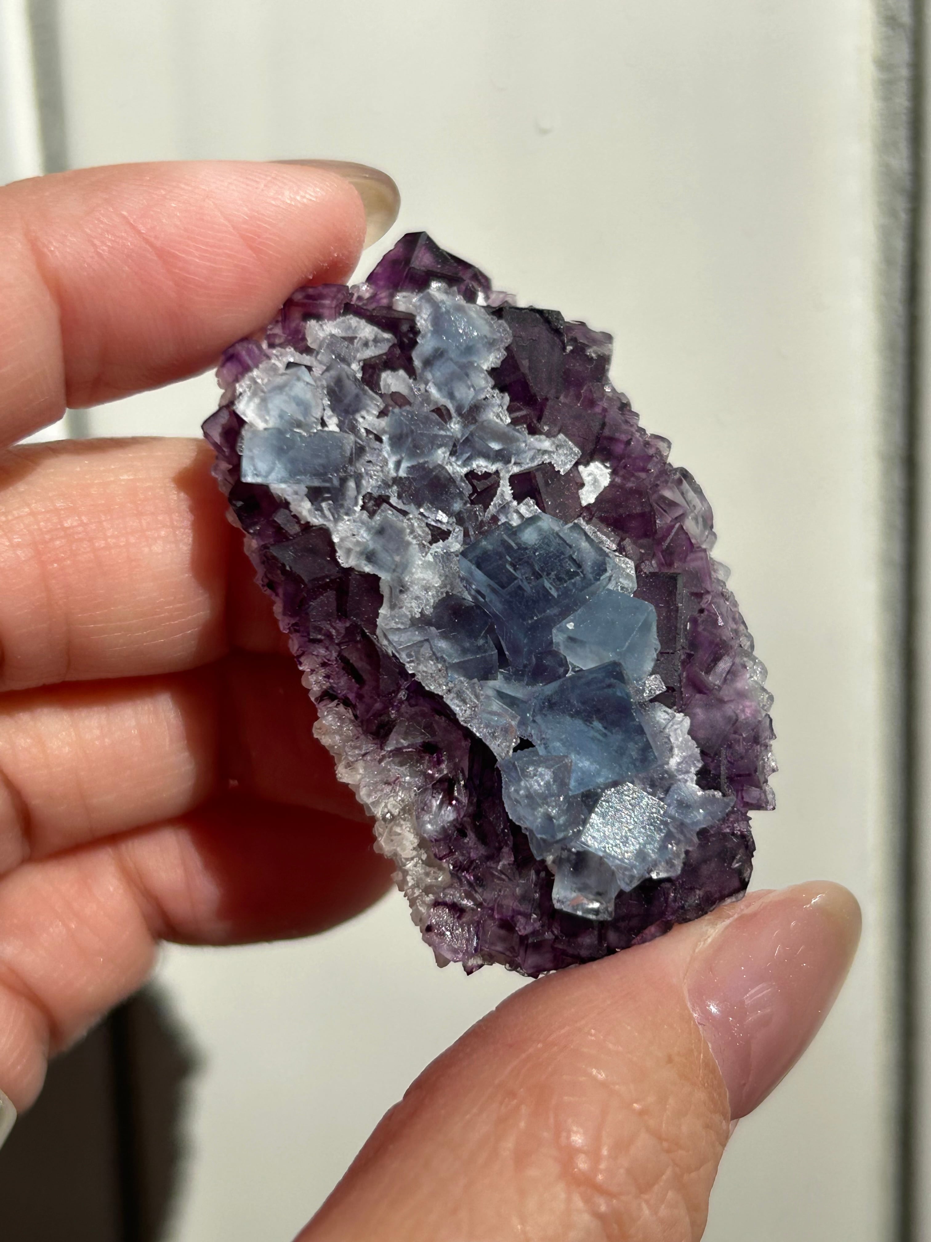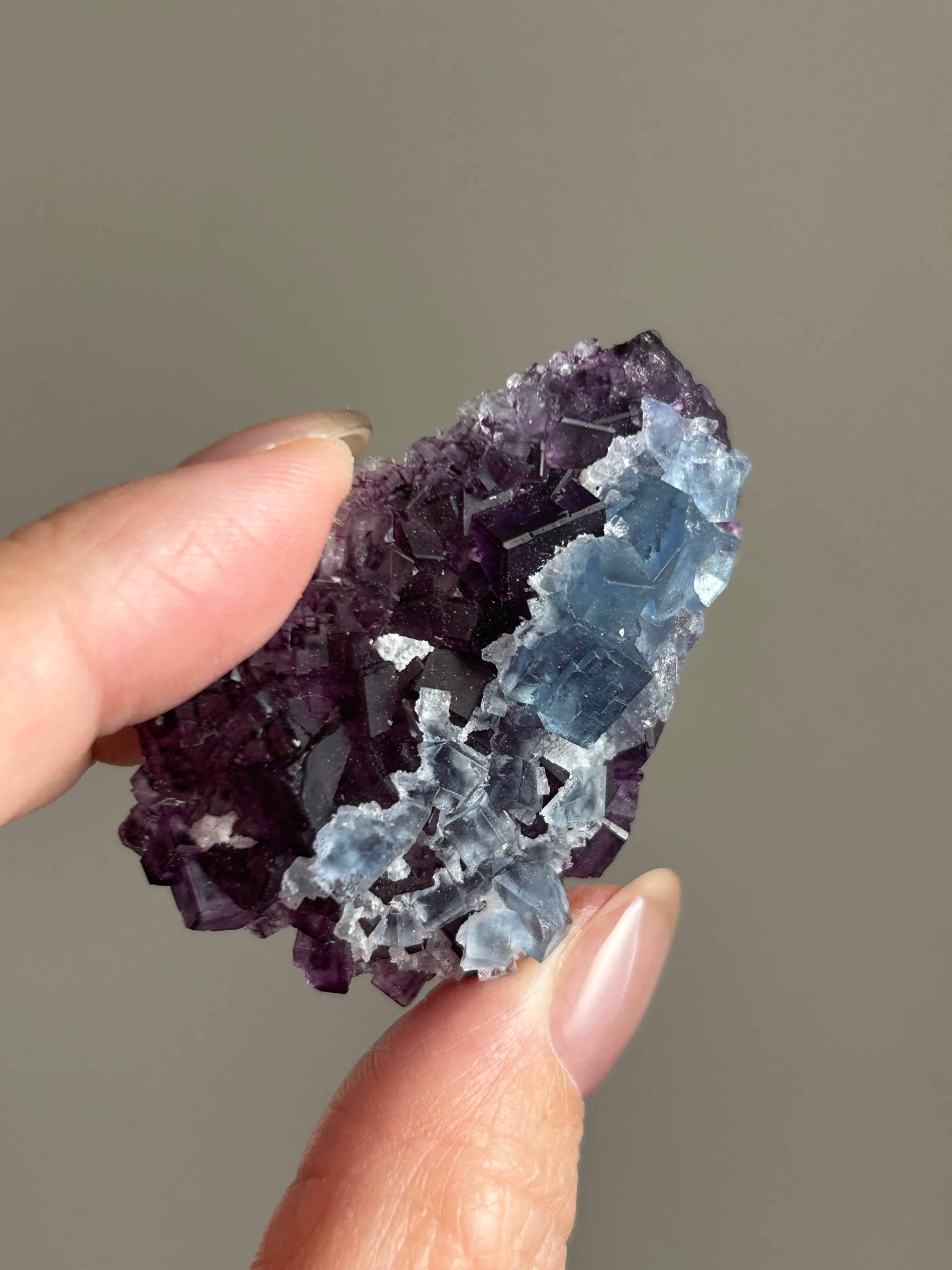 パープルフローライトと共生する細かなブルーのフローライトのバイカラーがとっても珍しいピース。一期一会の貴重な出会い、大切な希少鉱物コレクションの1つとしてぜひ^_^