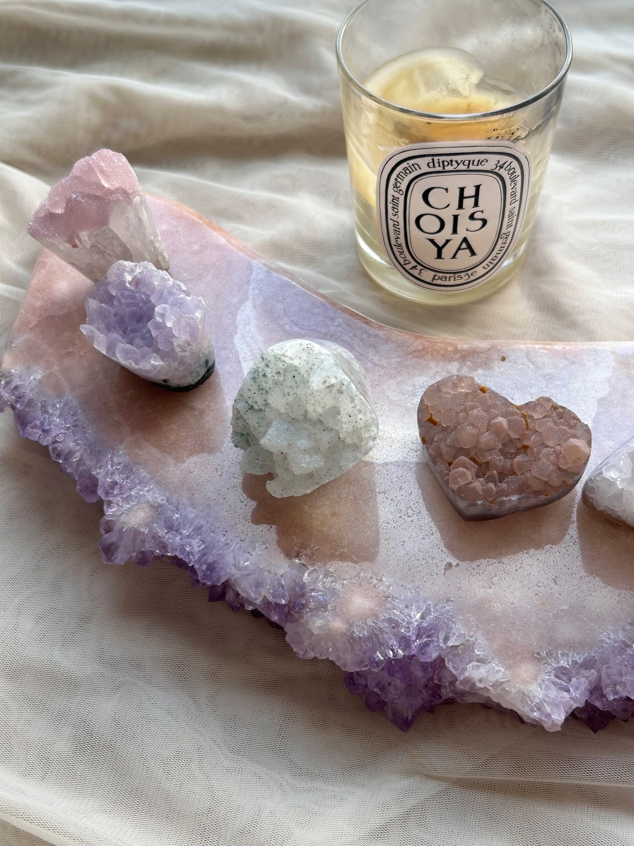 ピンクアメジストは、その美しい色合いだけでなく穏やかな癒しのエネルギーを持つ石としても知られ、リラックスした空間づくりにもぴったり。