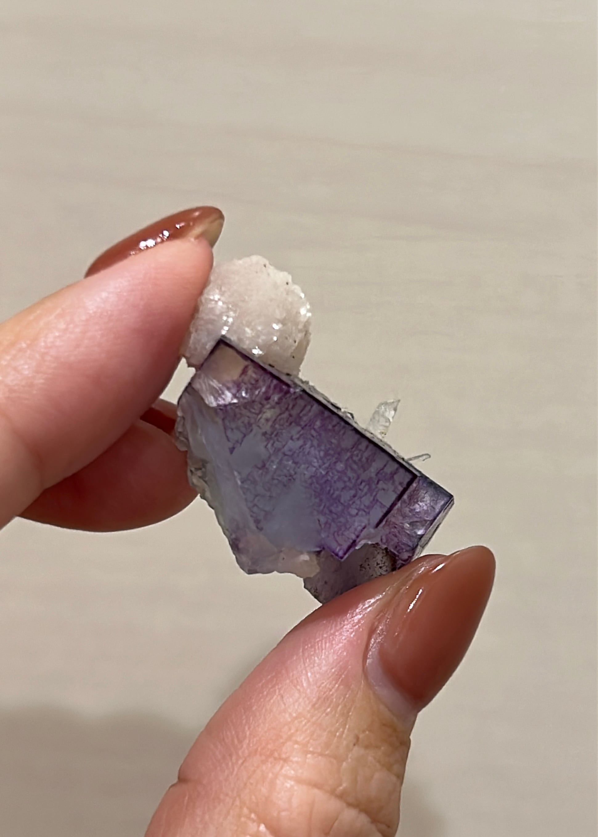 ブルーとパープル、バイカラーの小さなフローライト指先ほどのサイズですが、透明度が高くカラーがとっても素敵!