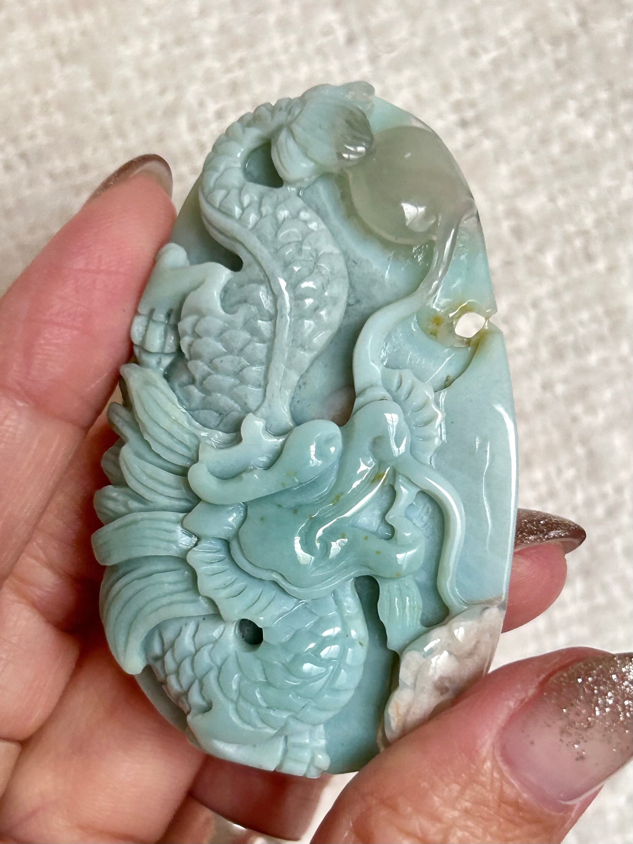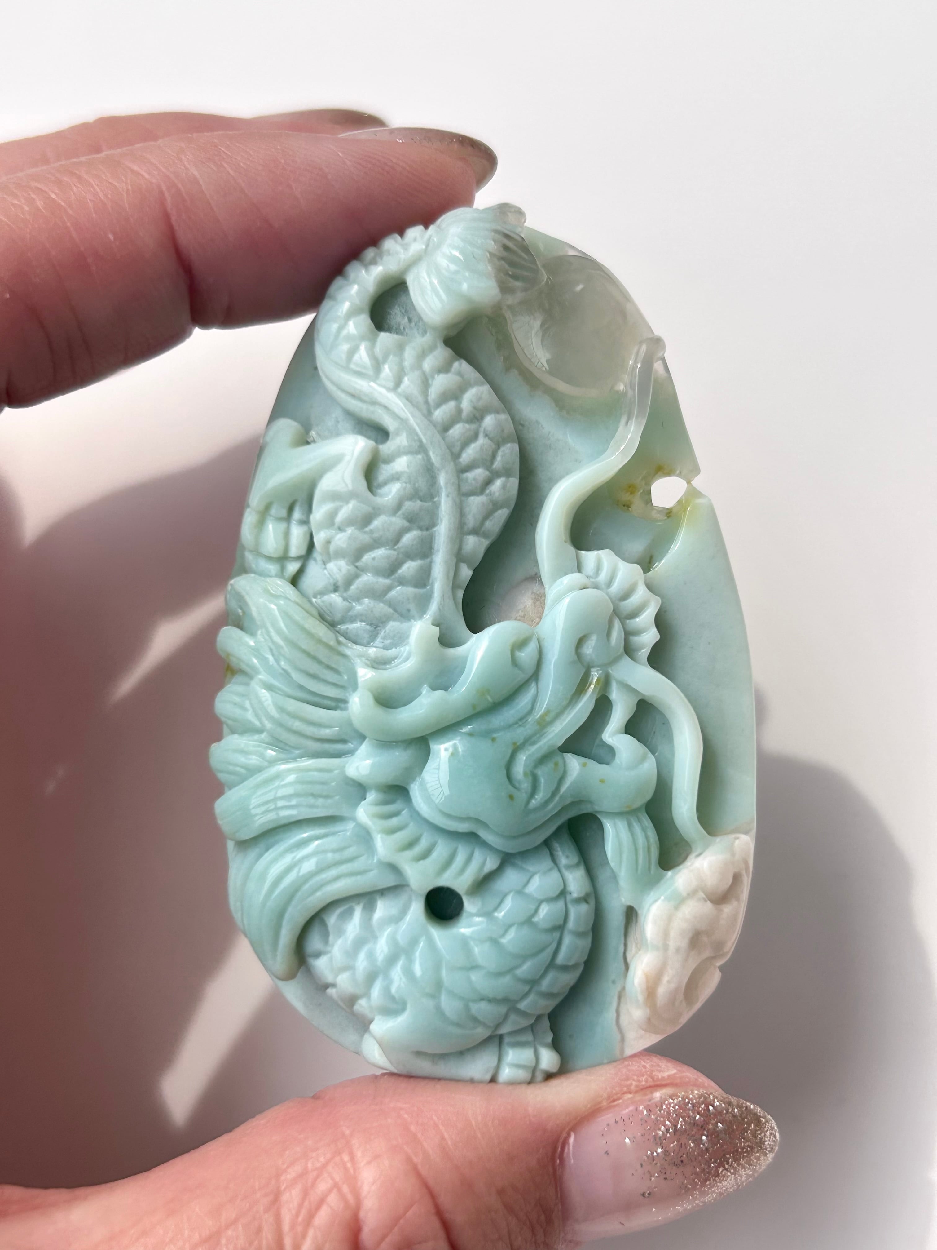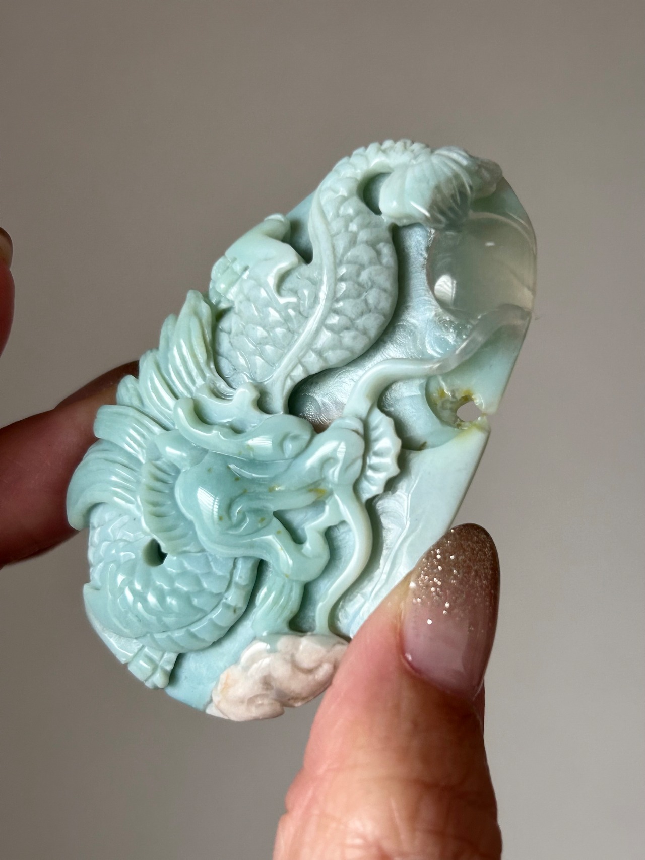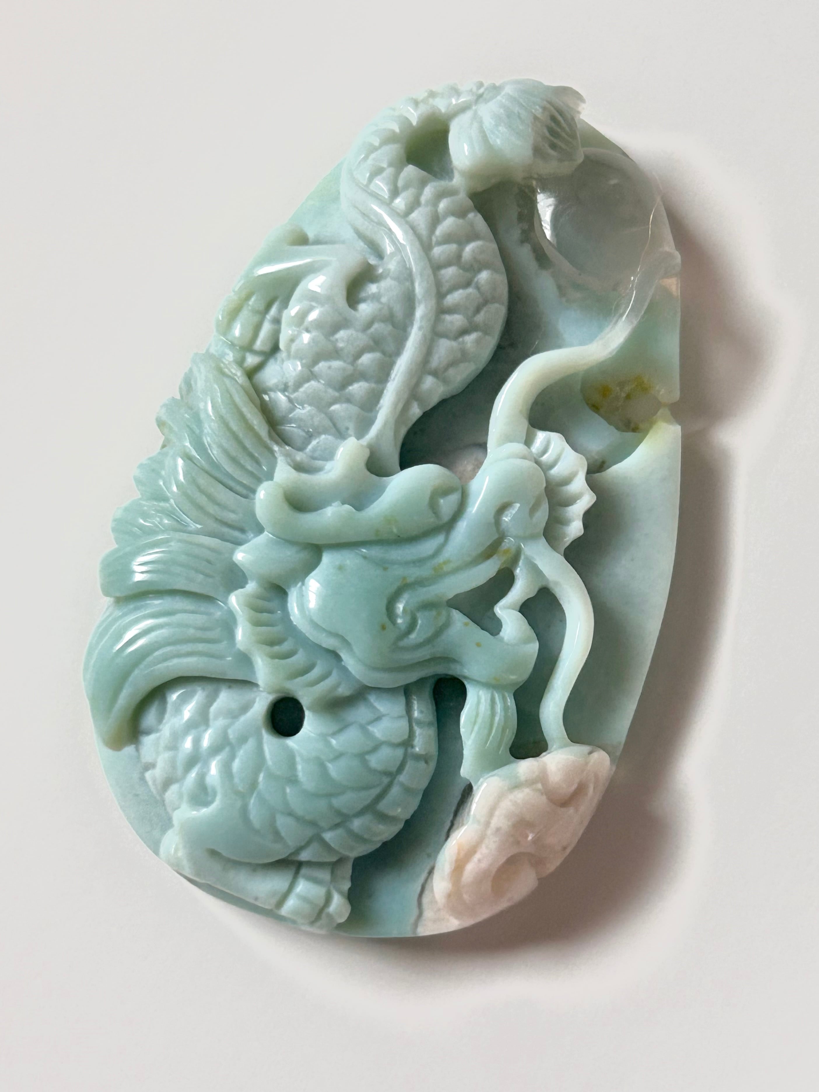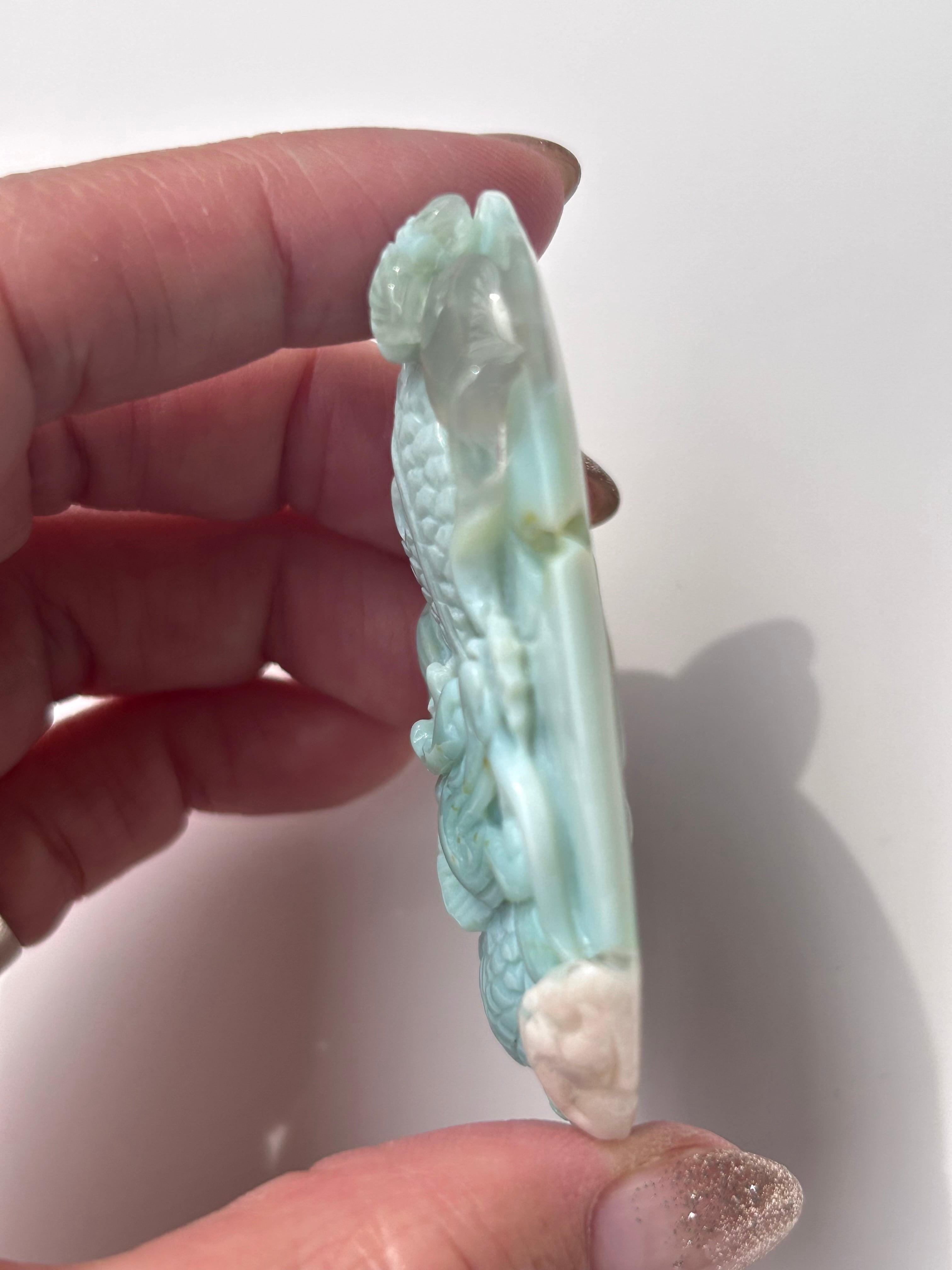 ✴︎芸術品!職人さんによるハンドカービング 青龍 フラワーアゲート お守り