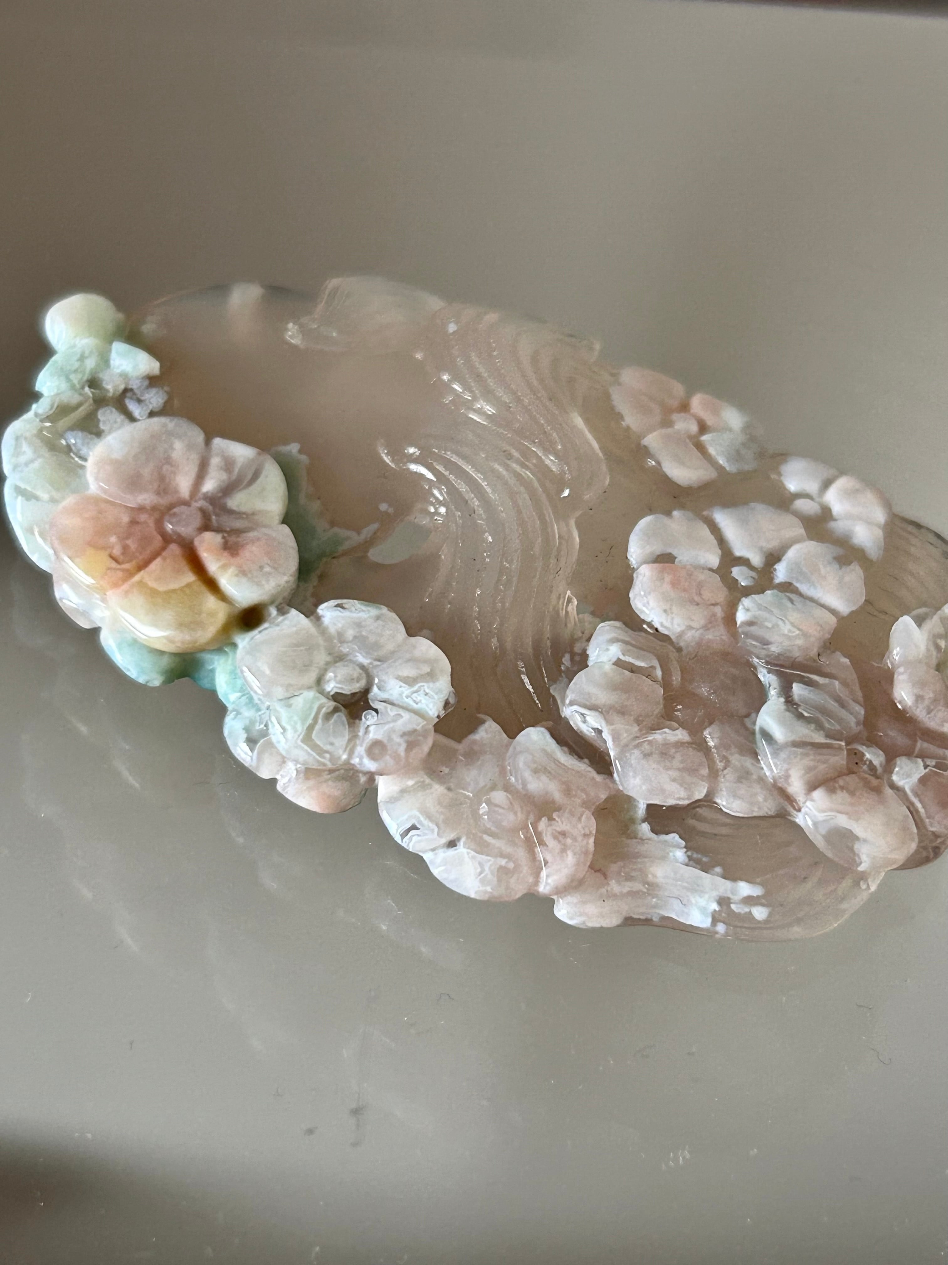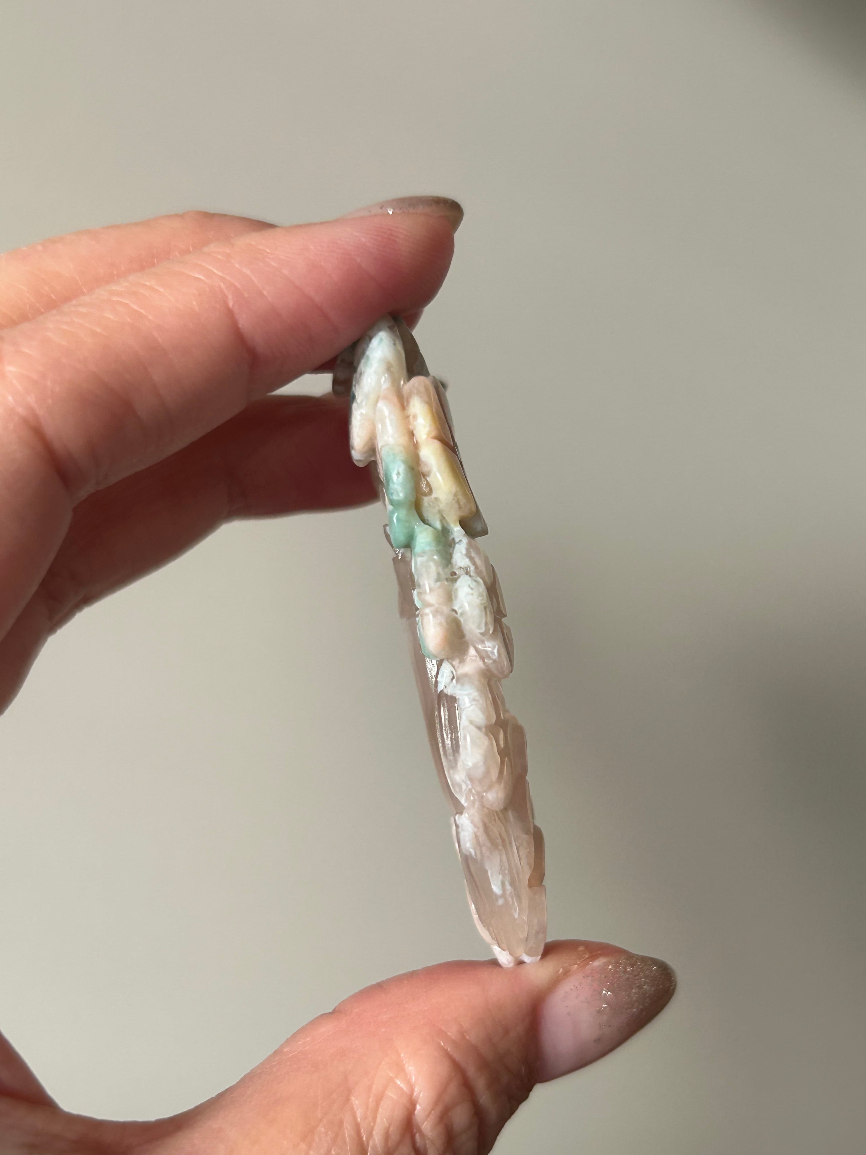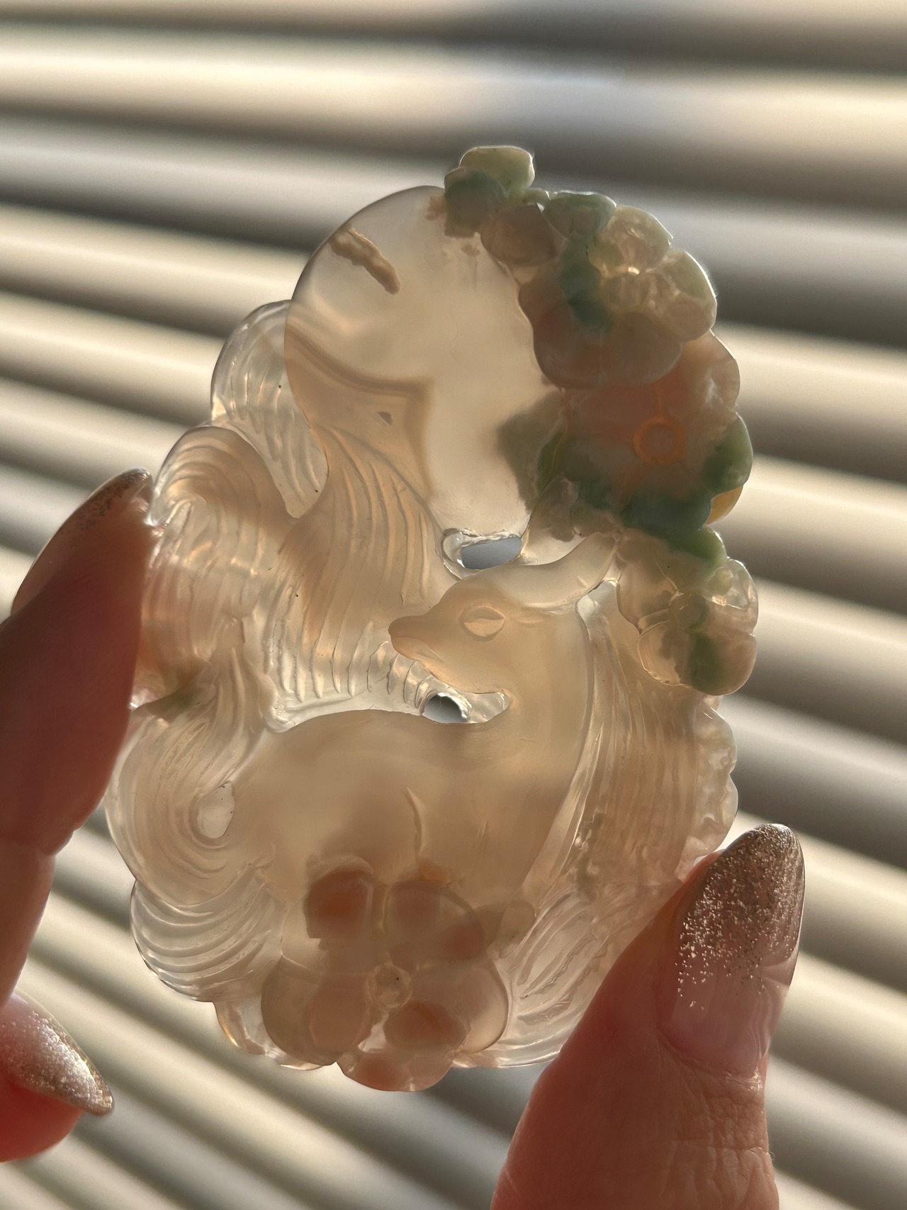 ✴︎ 芸術品!職人さんによるハンドカービング フラワーアゲート 九尾の狐B お守り