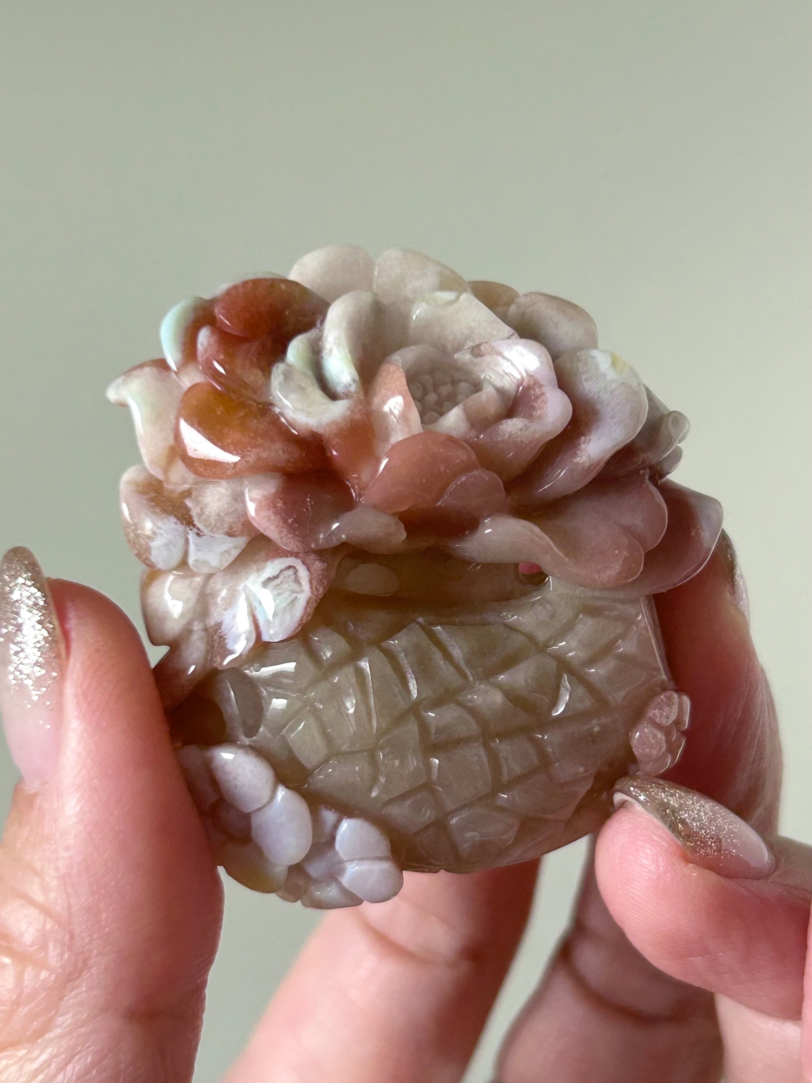 ✴︎ 芸術品!職人さんによるハンドカービング フラワーアゲート フラワーバスケット お守り