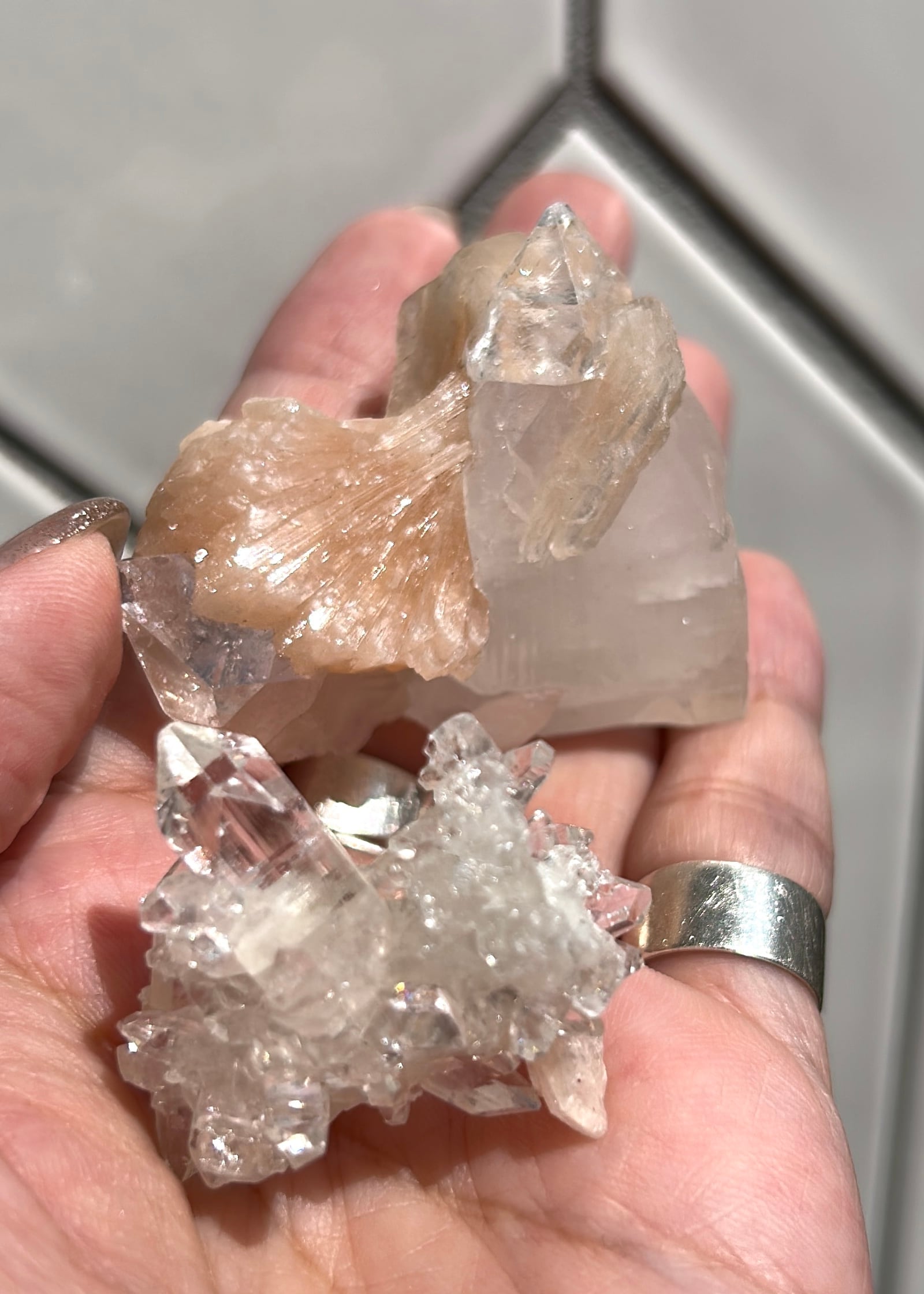 ピーチスティルバイト&アポフィライト共生とダイヤモンドアポフィライトの2点セットC
