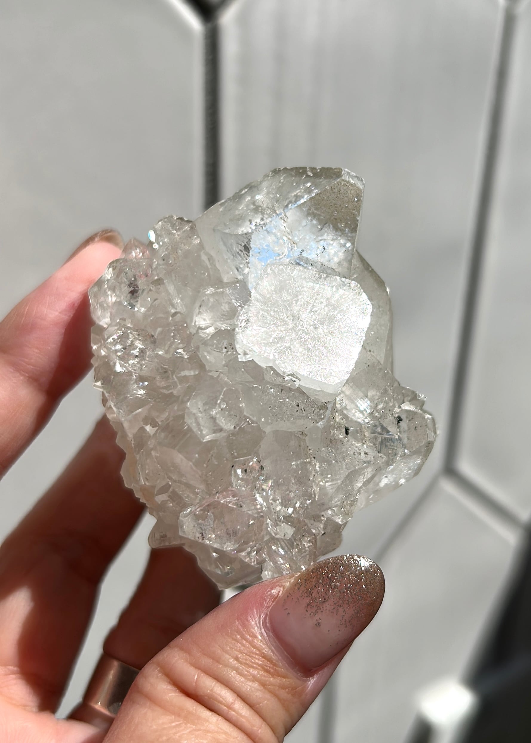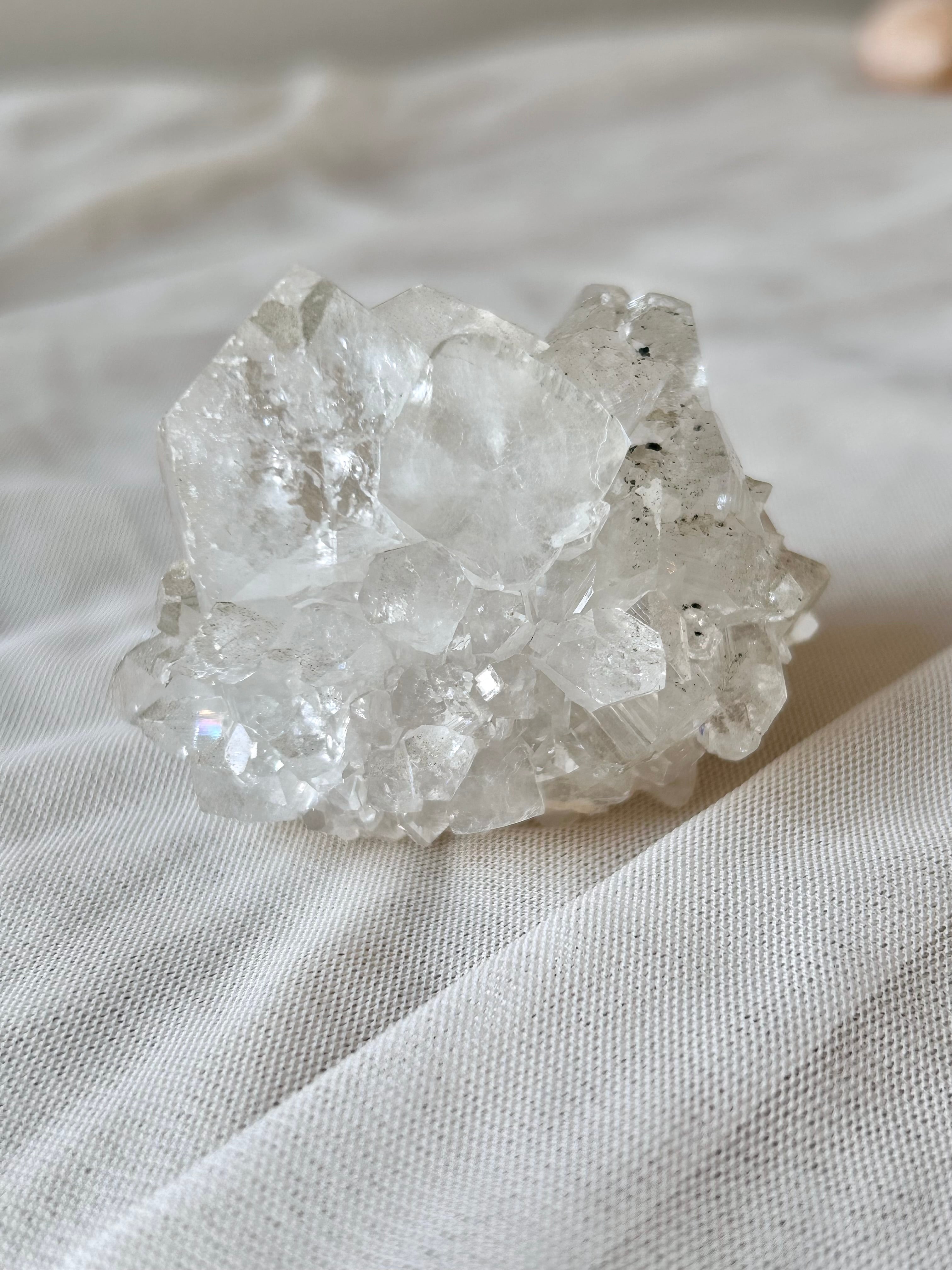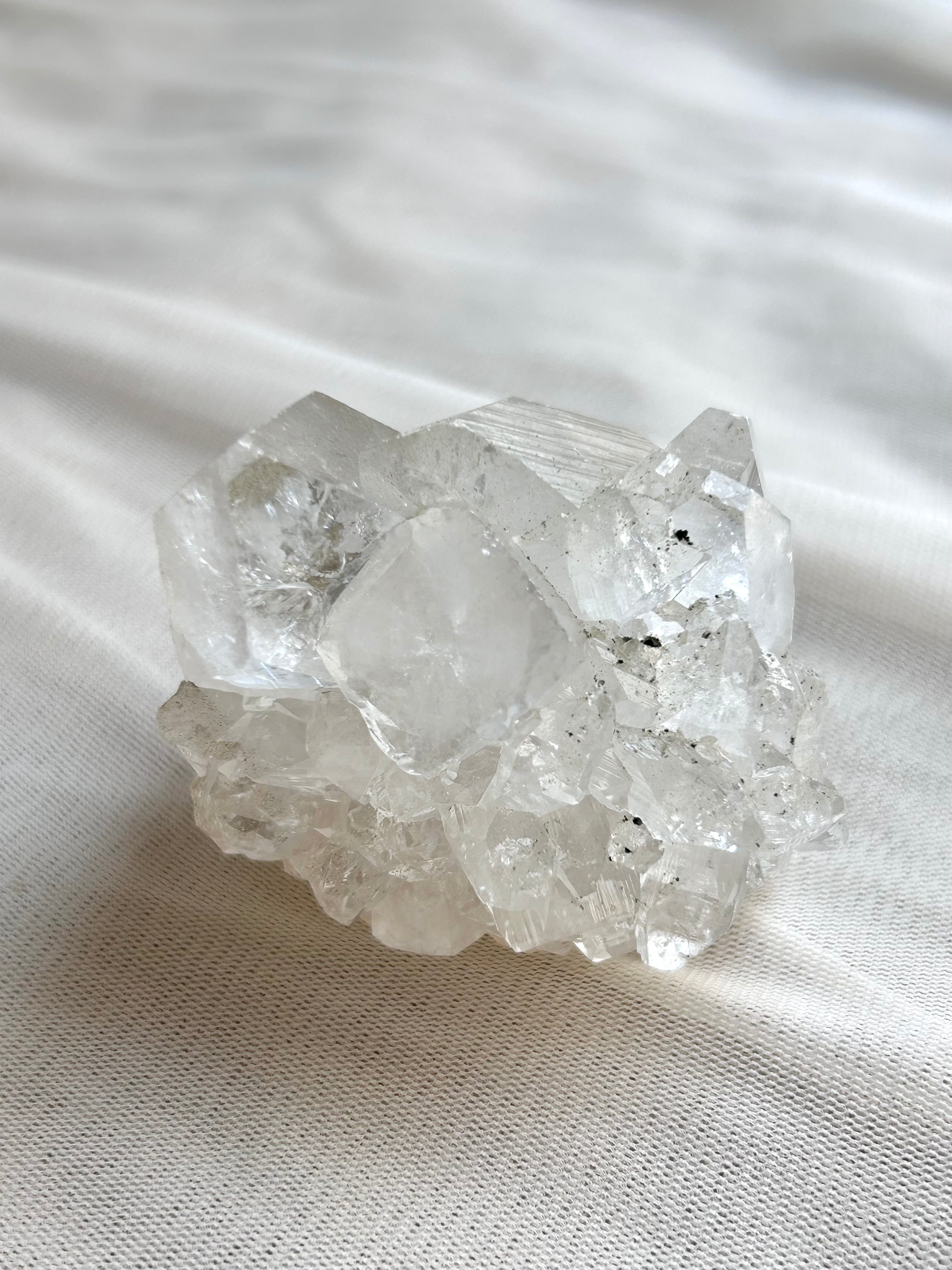 ※ アポフィライトは劈開性が強く、郵送途中の振動により小さなカケラが落ちている場合がございます。梱包は厳重に行いますが、石の特性上、上記の事が起きる場合がございます事をご理解いただきご購入をお願い致します。