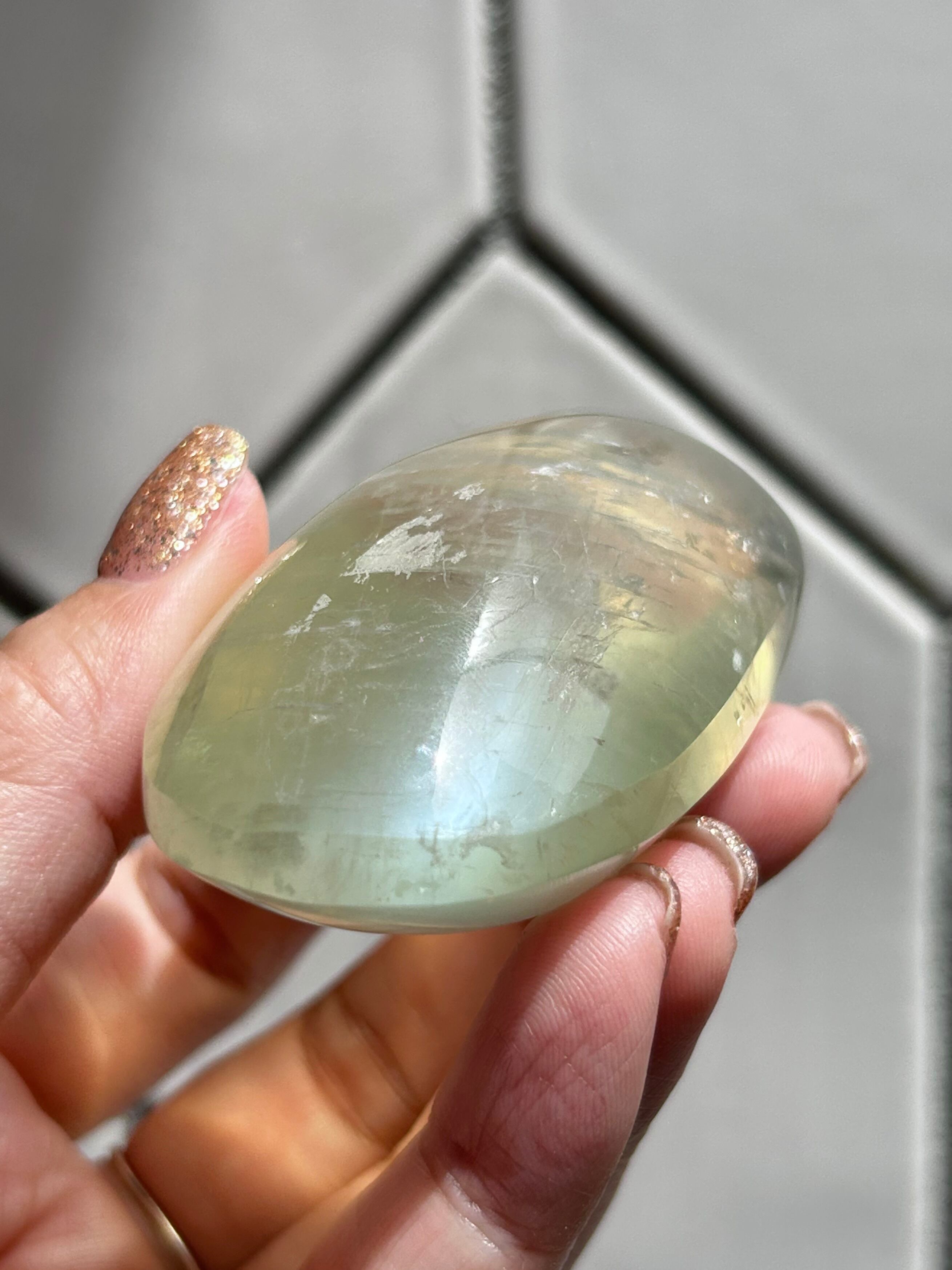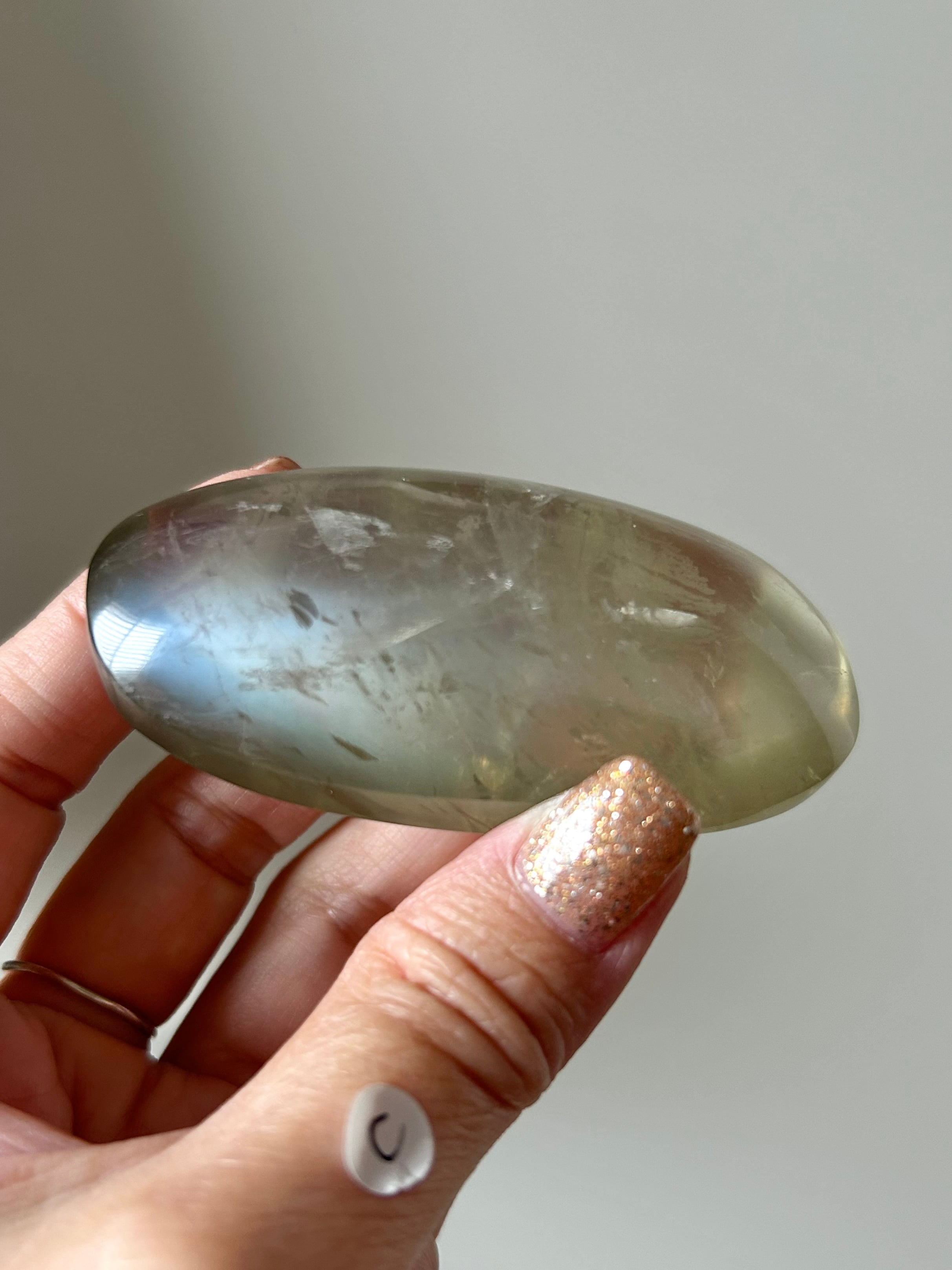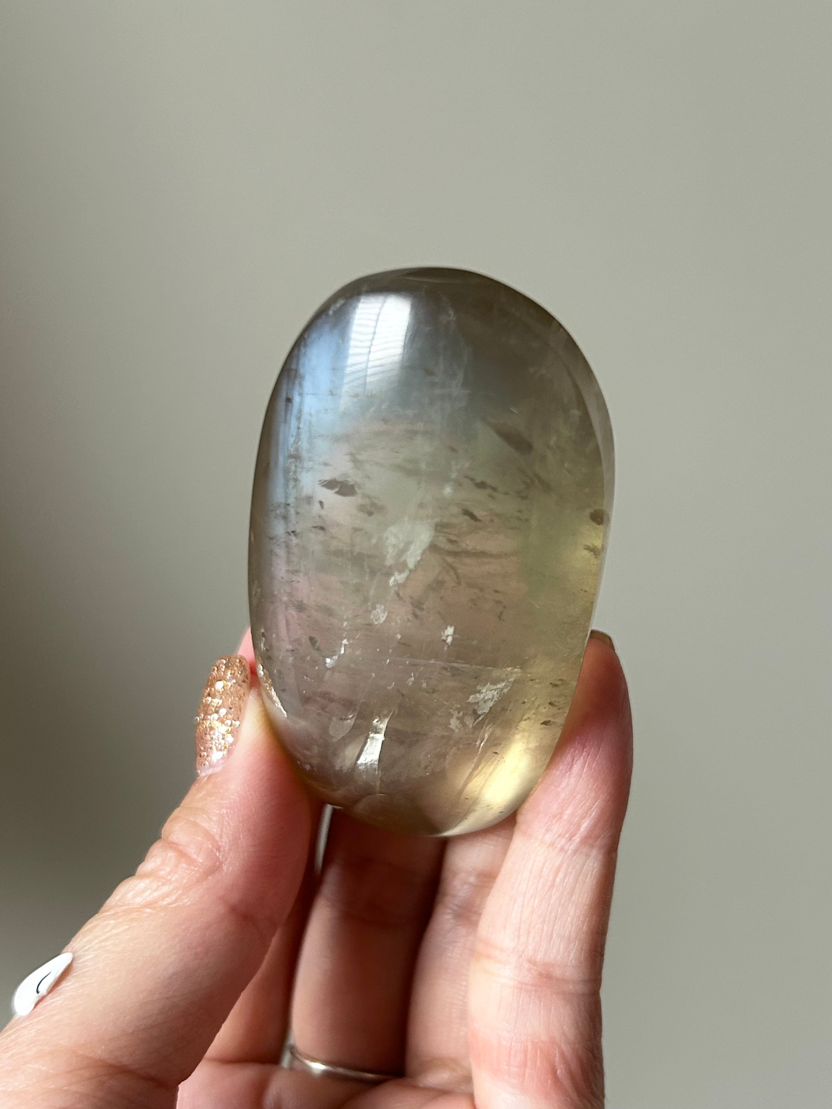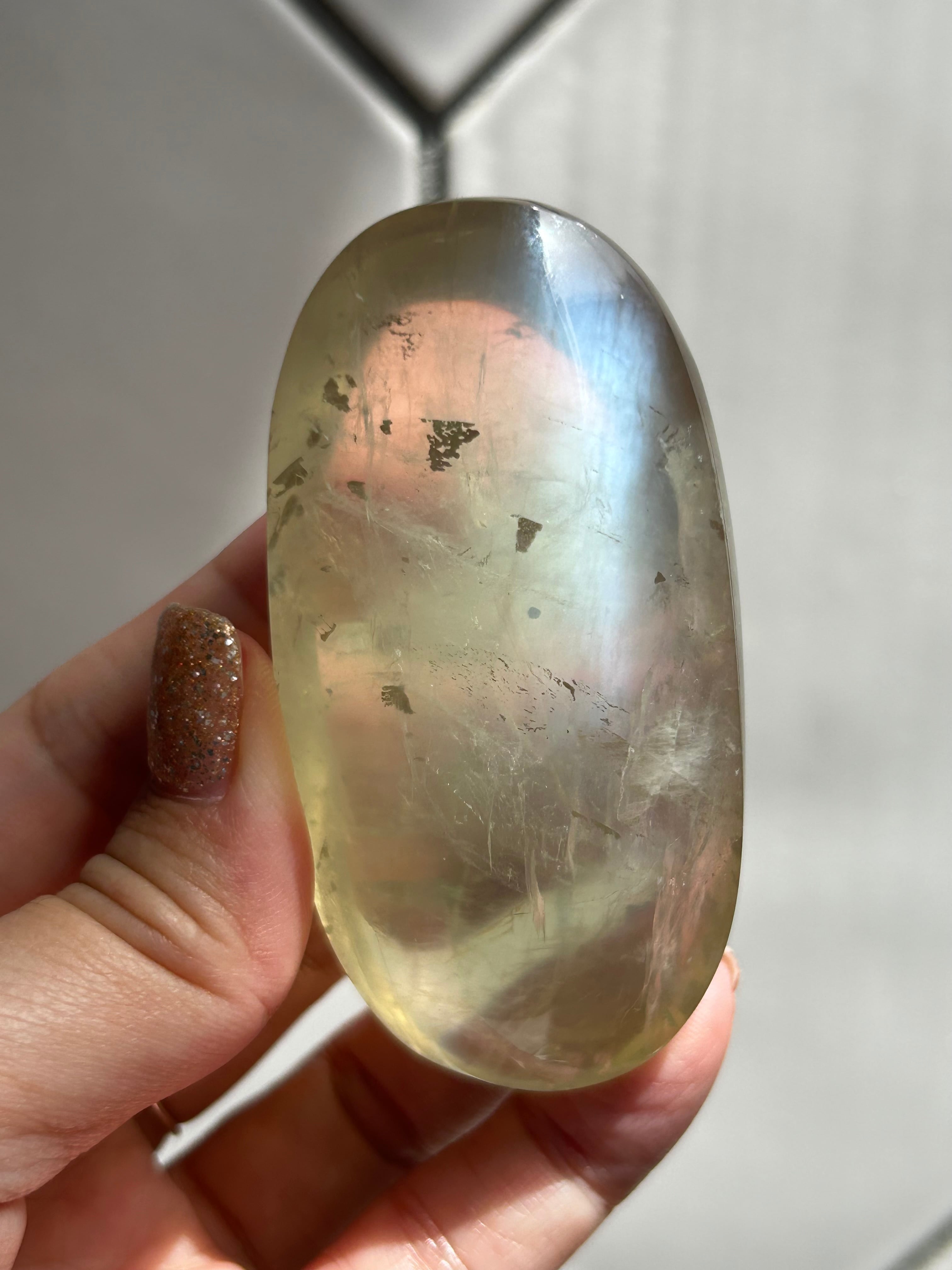 角度を変えるたびに、ほのかに青く白い光が静かに揺らめくロマンティックで神秘的な雰囲気を纏ったクリアなグリーンムーンストーン!その世界観がもう当店のセレクトにハマりすぎて、沢山仕入れたかったのですが…当店では4個のみの入荷となりました…泣