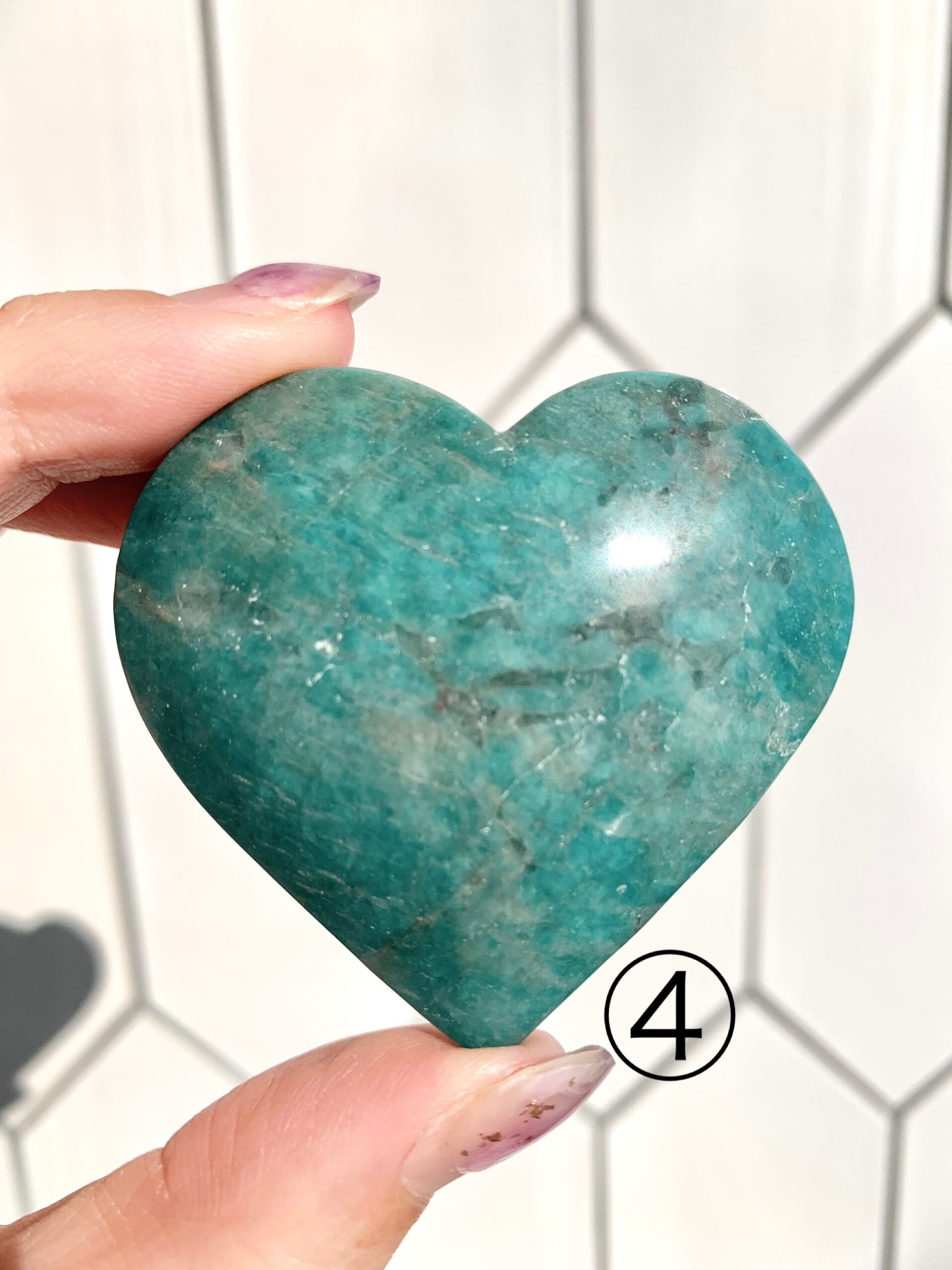 ピースによって入り方は様々、ふっくらした形のハートフォルムもとても可愛いらしいアマゾナイトです。お気に入りのピースが見つかりましたらぜひこの機会にお迎え下さいね♪