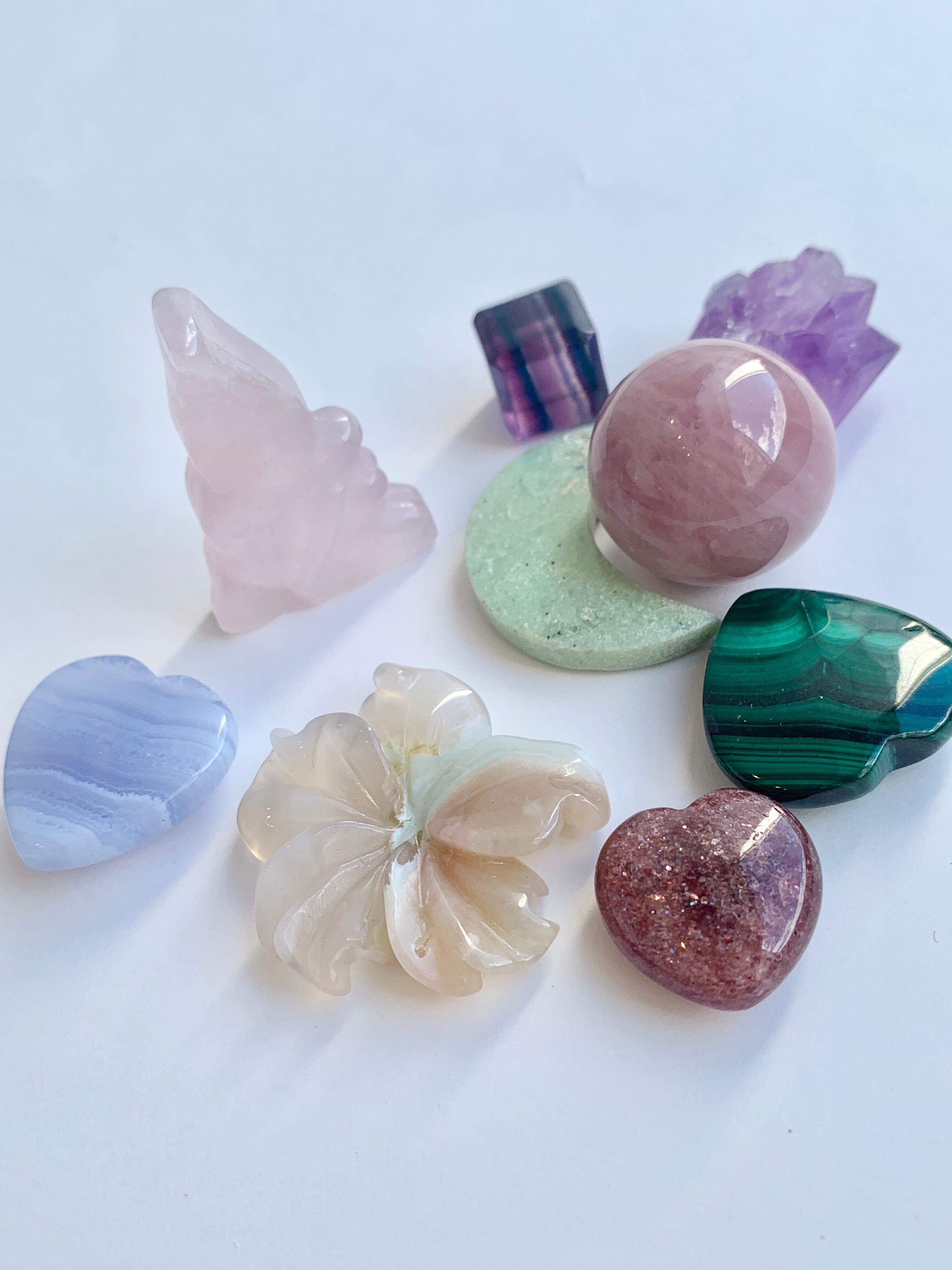 手のひらに収まる小さな可愛いらしいストーンを9種類詰め合わせてセットにしました。