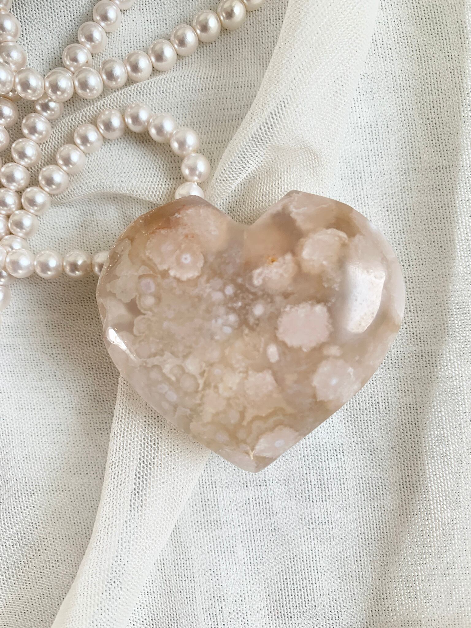 ずっしりボリューム感!大きなムーンとパフィーハートのフラワーアゲートセットのご紹介です。