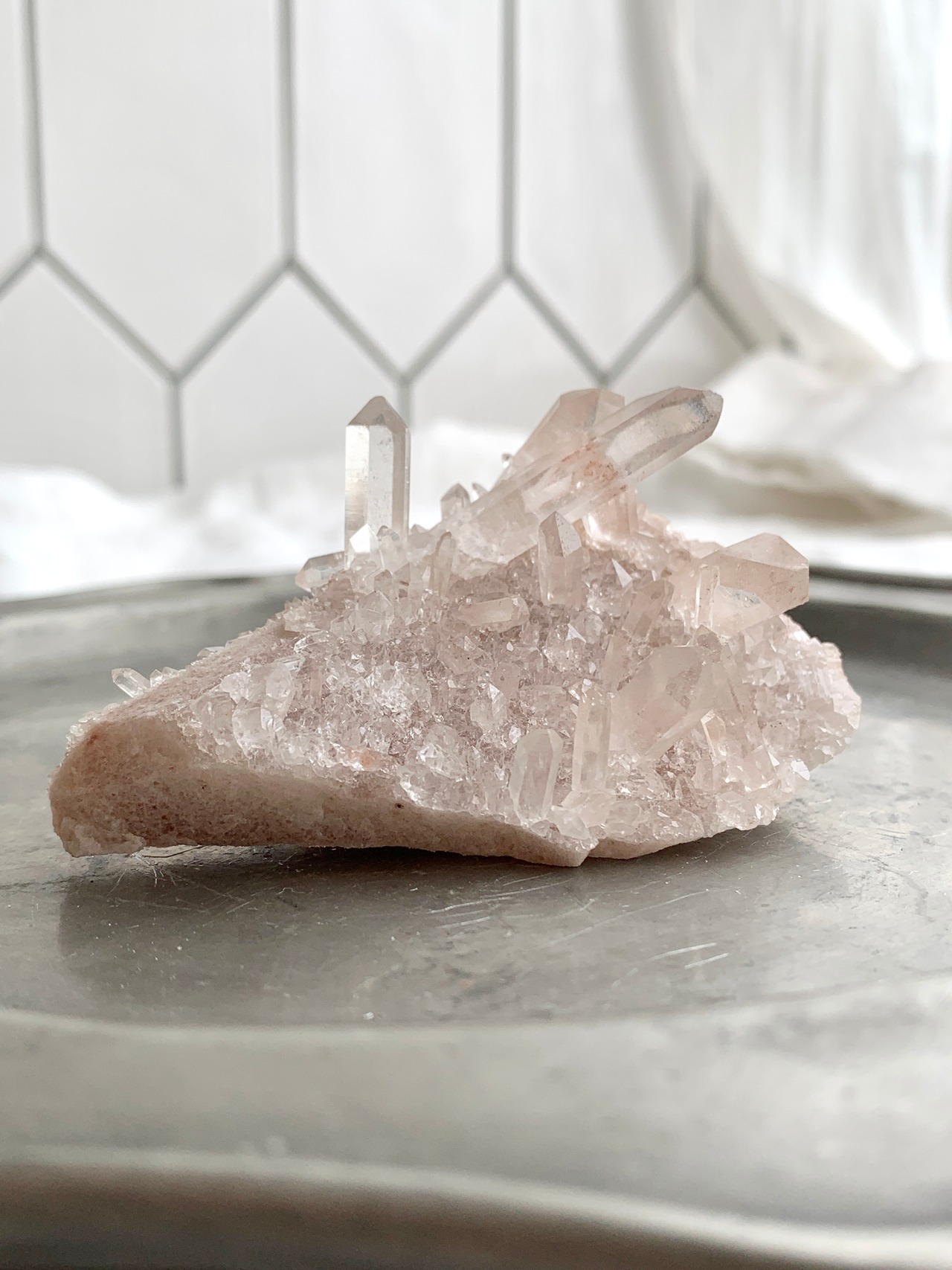ヒマラヤ山脈で産出される水晶の中でもマニカラン水晶はエネルギーが強いと言われ、酸化鉄を含んだ土の影響で淡いピンクやオレンジがかった優しい色合いをしているのもあり人気の水晶です。