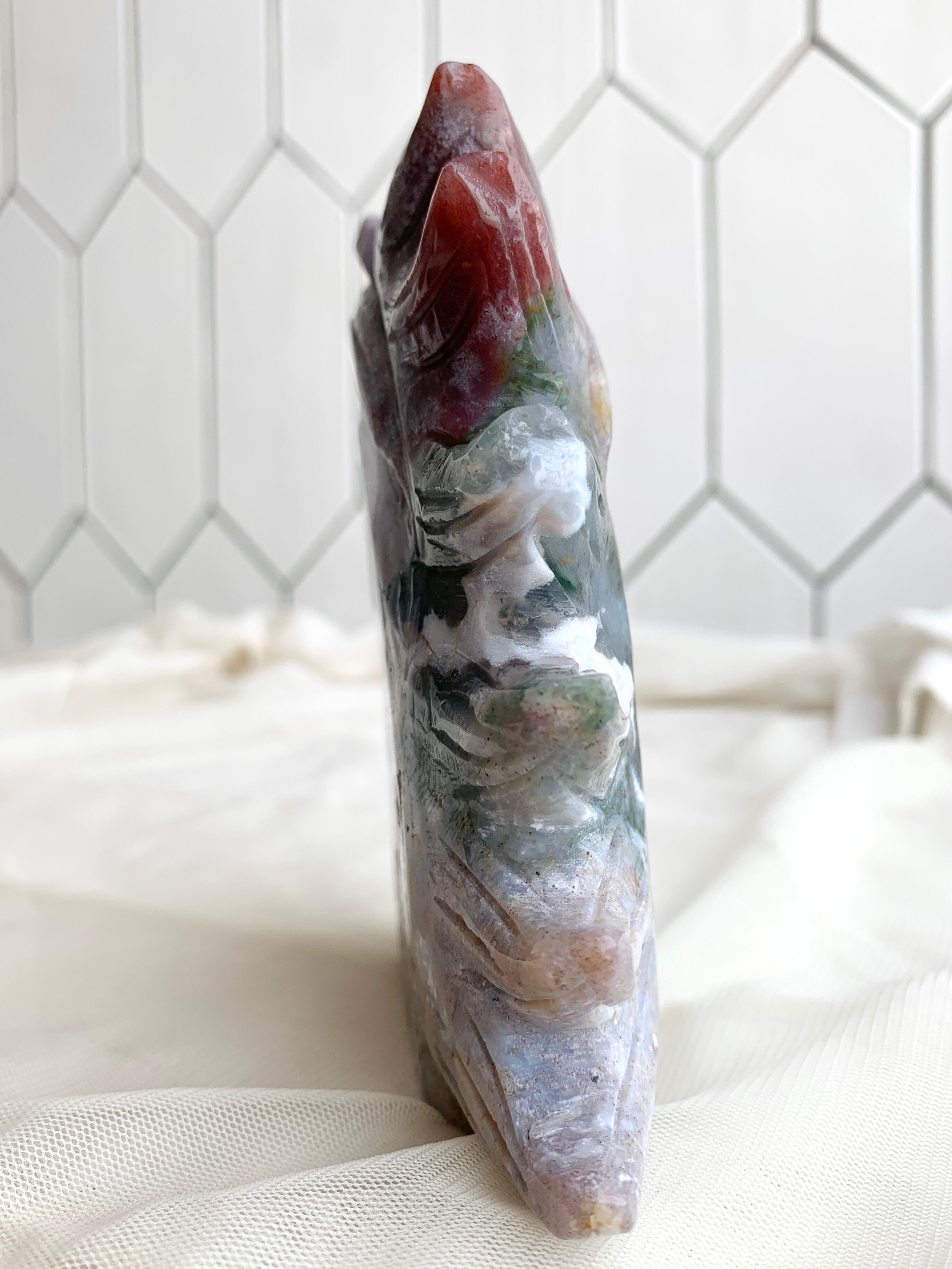 落ち着いたオーシャンジャスパーのカラーと奥行きのある模様のコントラストに見惚れてしまうユニコーンピースです♪