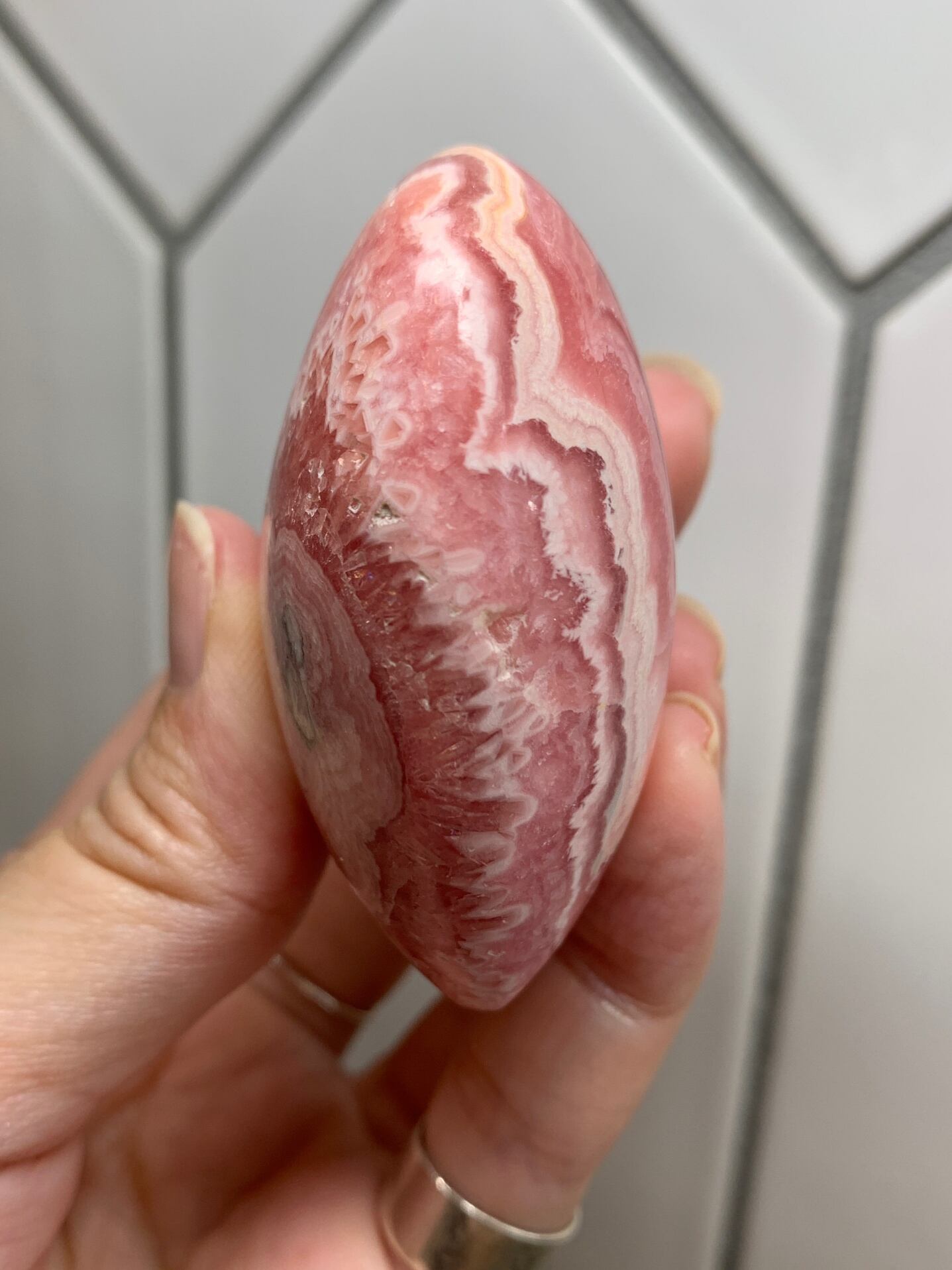 ロードクロサイトは高価な石なので手のひらに乗せるとずっしりと重みを感じるボリューム感がとってもゴージャス!!ファンも多く魅力的な石でずっと人気が高い石です♪