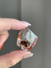 ◯ススキをイメージさせるガーデンクォーツ、淡いブルーグレーカラーと朱赤の内包物によるコントラストが珍しくも美しいガーデンクォーツです。小さなサイズ感ですが透明度が高く肉眼でも細部までご確認頂けます。