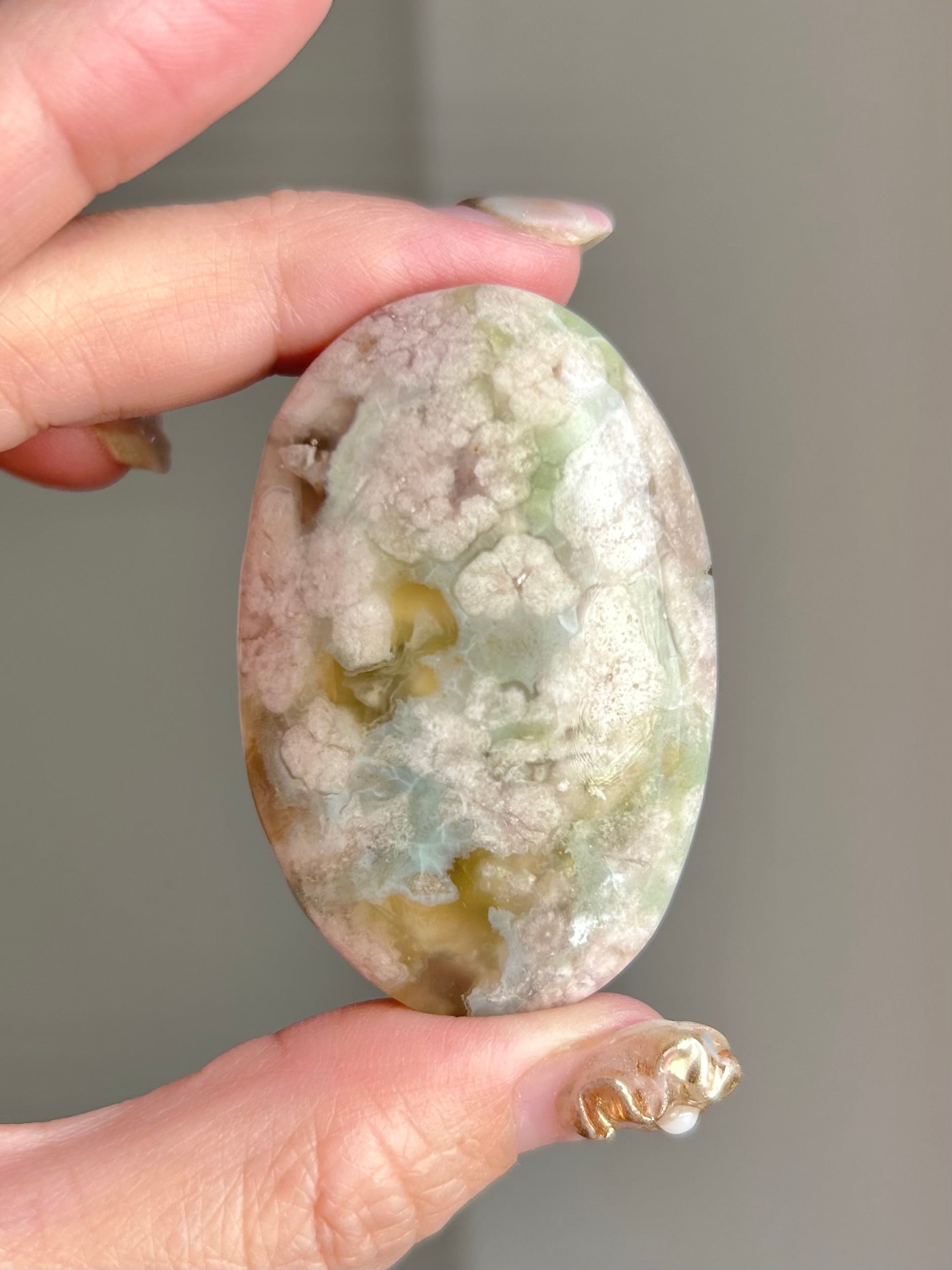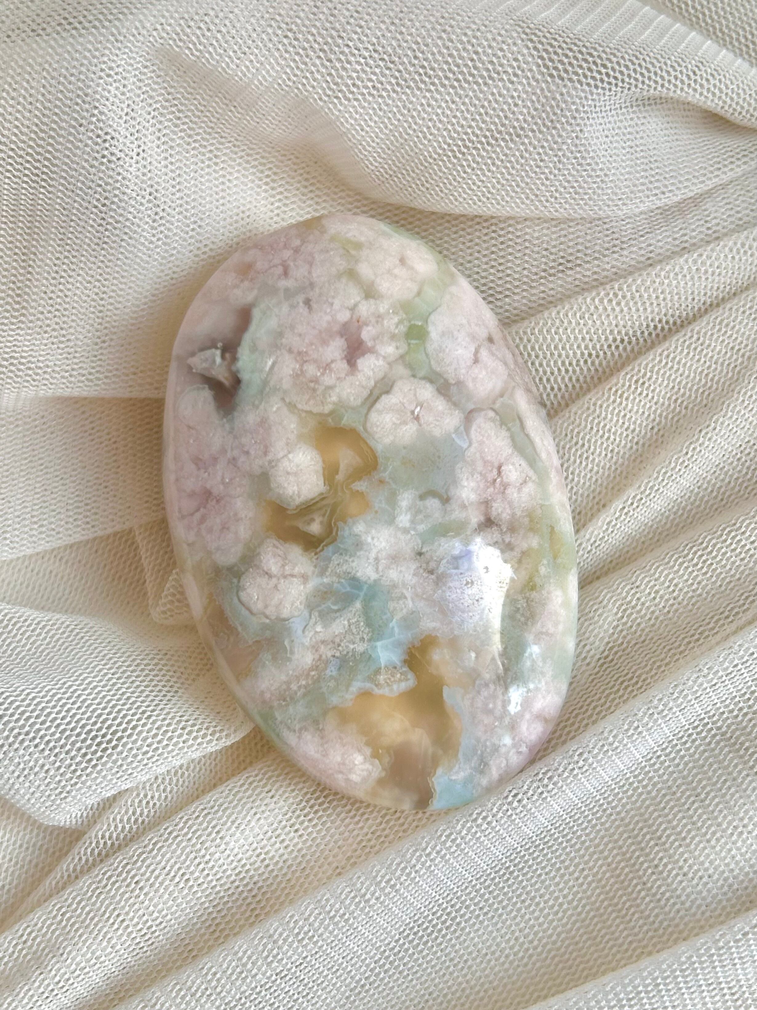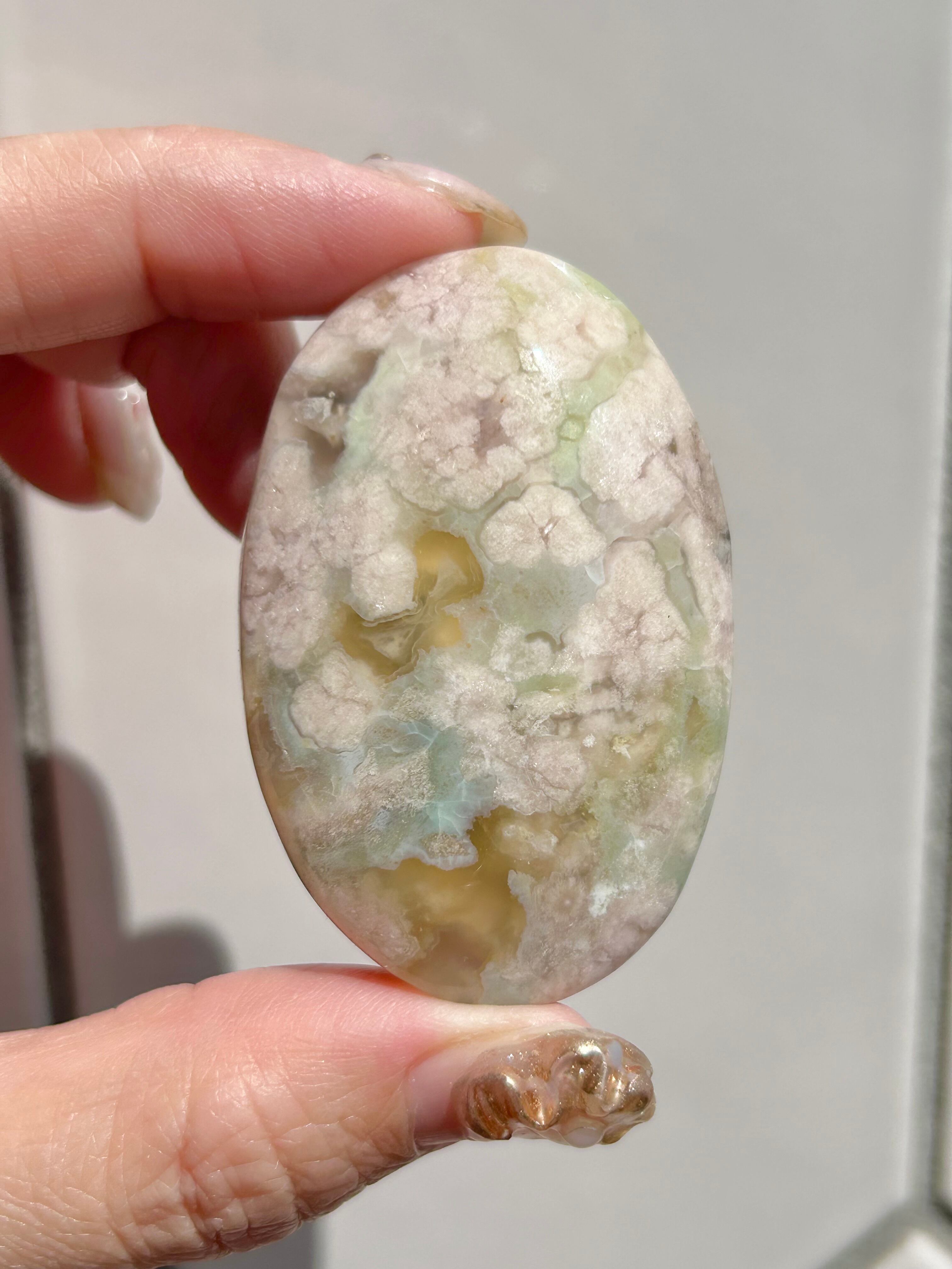 フラワー結晶が沢山♪春の訪れを感じさせてくれるような優しいミントグリーンカラーのフラワーアゲートのご紹介です。