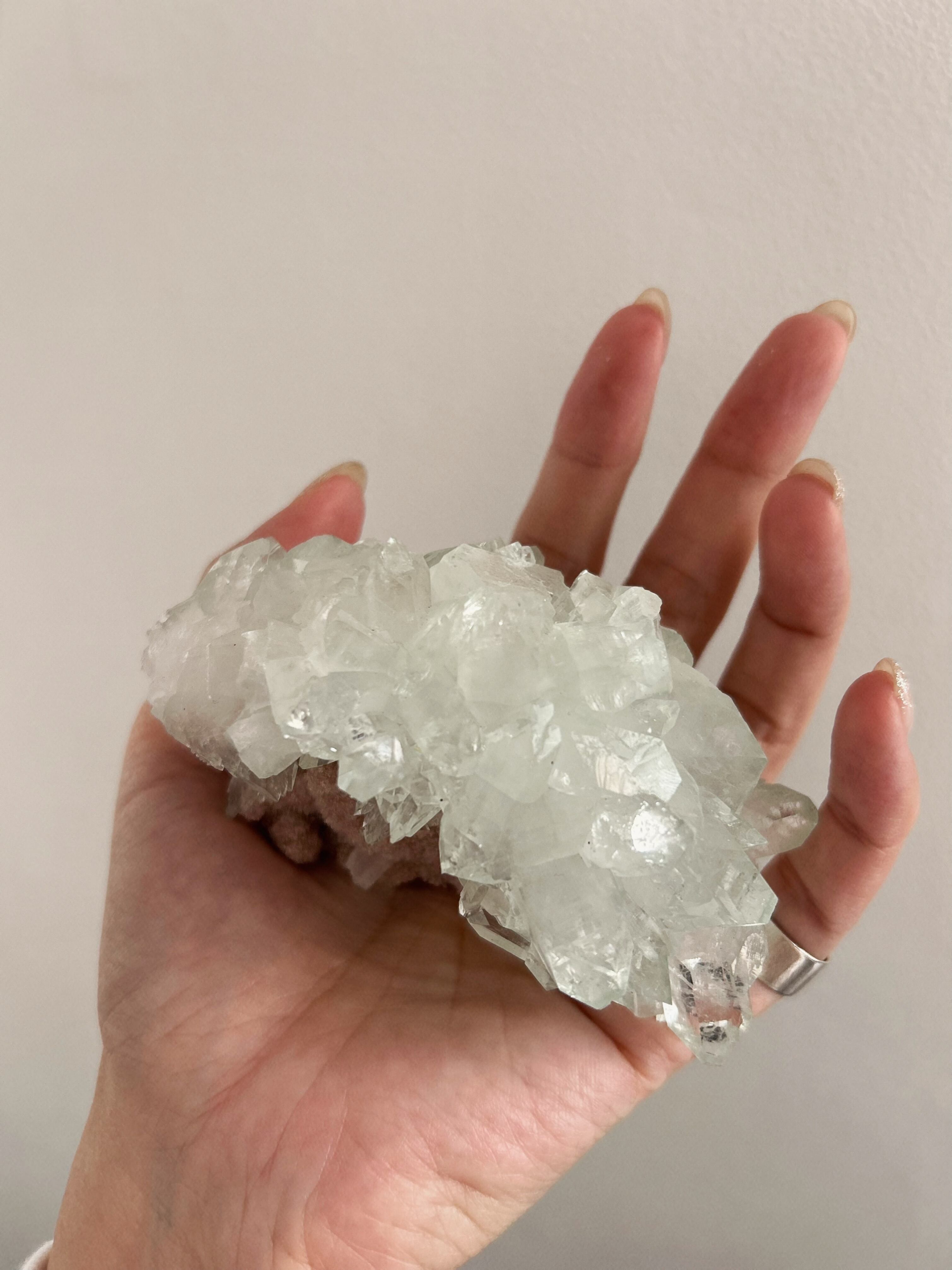 注)アポフィライトは熱に弱い(水も避けて下さい)ので直射日光が当たる場所での保管は避けて頂くようお願い致します。