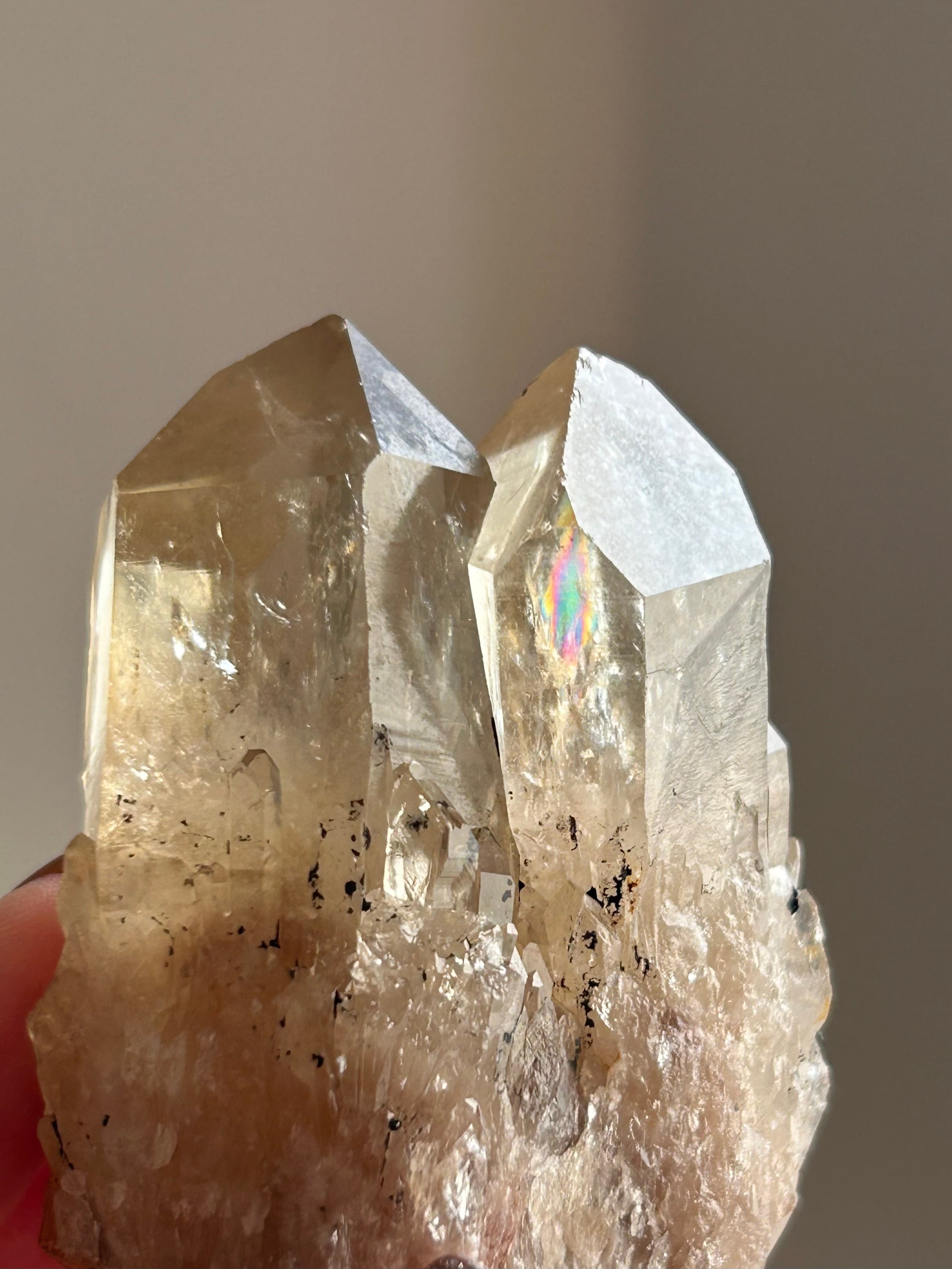 Cはタントリックツインピース、双子ちゃんです♪どちらの柱にも虹が見えます。自立はしますが不安定ですので寝かせての保管をオススメ致します。自立の様子は動画にてご確認いただけます。