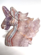 羽が彫り込まれたユニコーンは珍しくあまり目にする事がありません、羽を纏った姿が凛々しく美しい佇まいに見惚れてしまいます^_^アゲートの層の細かなラインとアメジストパープルのコントラストも見応えがあり美しいですね^_^
